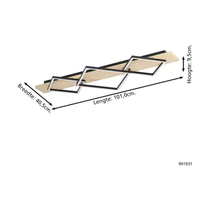 Eglo Ceiling Light Boyal Steel Wood Black Brown 13W 1750lm - 830 Warm White | IP20