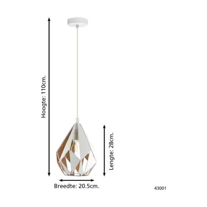Eglo Pendant Carlton 1 Steel White Gold | IP20 - Suitable for 1x E27