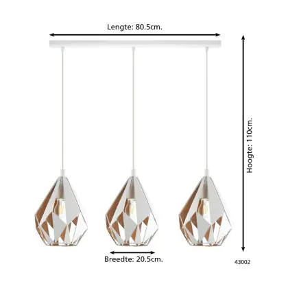 Eglo Pendant Carlton 1 Steel White Gold | IP20 - Suitable for 3x E27