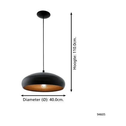 Eglo Pendant Moga 1 Steel Black Copper | IP20 - Suitable for 1x E27