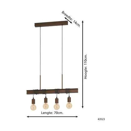 Eglo Pendant Townshend 4 Steel Brown | IP20 - Suitable for 4x E27