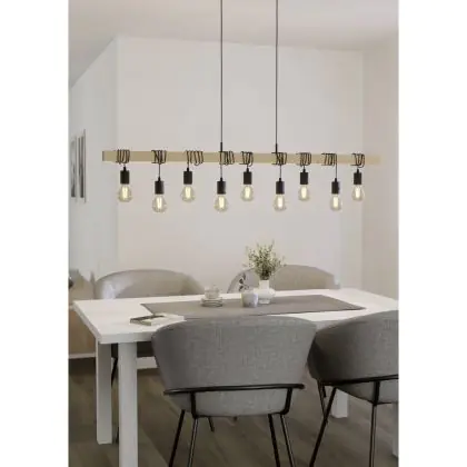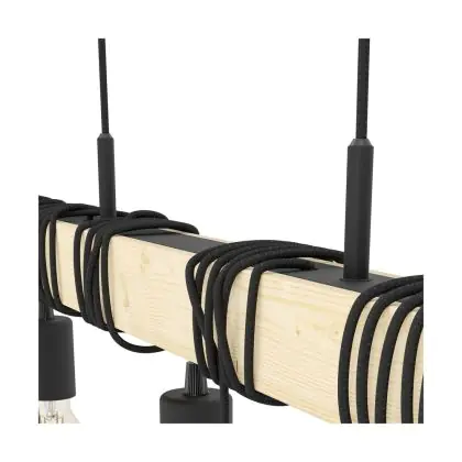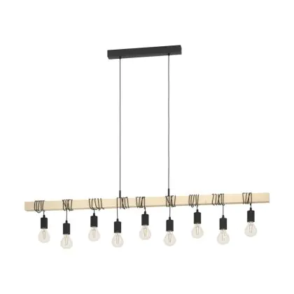 Eglo Pendant Townshend Wood Steel Brown Black | IP20 - Suitable for 9x E27