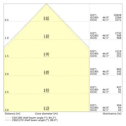 ![]() The colour code is a combination of colour rendering (CRI) and light colour (Kelvin). The first number indicates the colour rendering (1 = very poor colour rendering, 9 = maximum colour fastness). The second and third number contains the light colour. Example: the colour code 830 consists of good colour rendering (8) and warm white light (3000K). |