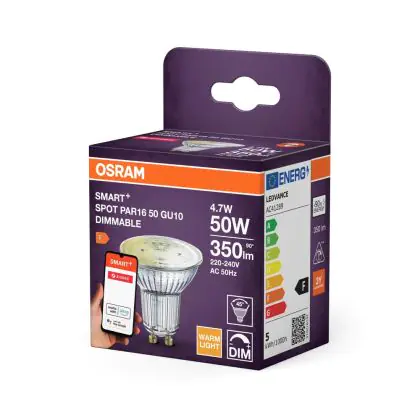 Osram Smart+ Spot LED Reflector GU10 PAR16 4.7W 350lm 45d - 827 Extra Warm White | Zigbee Dimmable - Replaces 35W